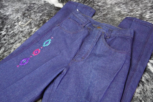 Vintage Roper Jeans with Colorful Aztec Embroidery - 28